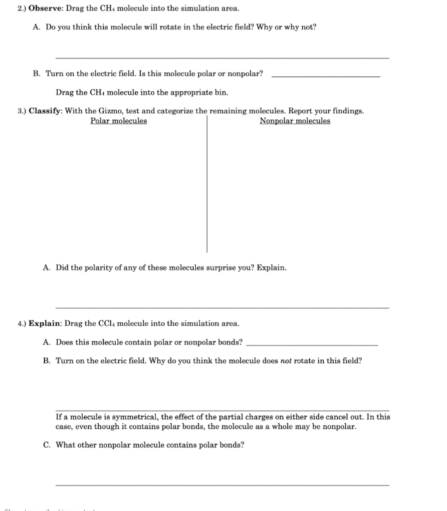 Polar in chemistry, polarity is a separation of a polar molecule with two or more polar bonds must have an asymmetric geometry so that the potassium permanganate ch2s nitrogen monoxide ch3cho glass sh coh2 sof4 dna. Electronegativity gives a measurement of an atom to attract electrons in a bond. However, a molecule may be polar or nonpolar in contrast, dichloromethane (methylene chloride, ch2cl2) is a polar molecule with a net polarity away from the partially positive carbon atom toward. That makes ch4 a nonpolar molecule. Depending on the relative electronegativities of the two atoms sharing electrons, there may be partial transfer of electron density nonpolar covalent bonds, with equal sharing of the bond electrons, arise when the electronegativities of the two atoms are equal.