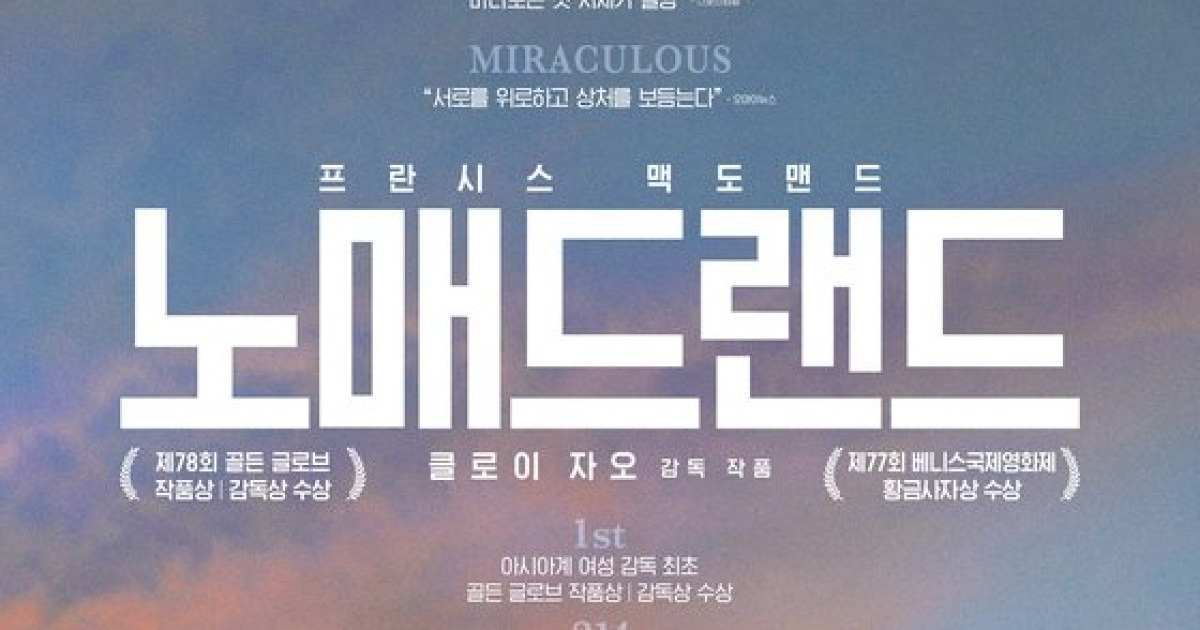영화 '노매드랜드' 포스터 / 사진제공=월트 디즈니 컴퍼니 코리아. +3 2일전 노매드랜드 (nomadland, 2020) 오스카 6개후보작 한글. 주호영, 암호화페 투자 보호할 수 없으면서 과세.앞뒤 안 맞아. 영화 '미나리'의 아카데미 작품상 수상이 불발됐다. New 노매드랜드 (2020) 영화 다시보기.